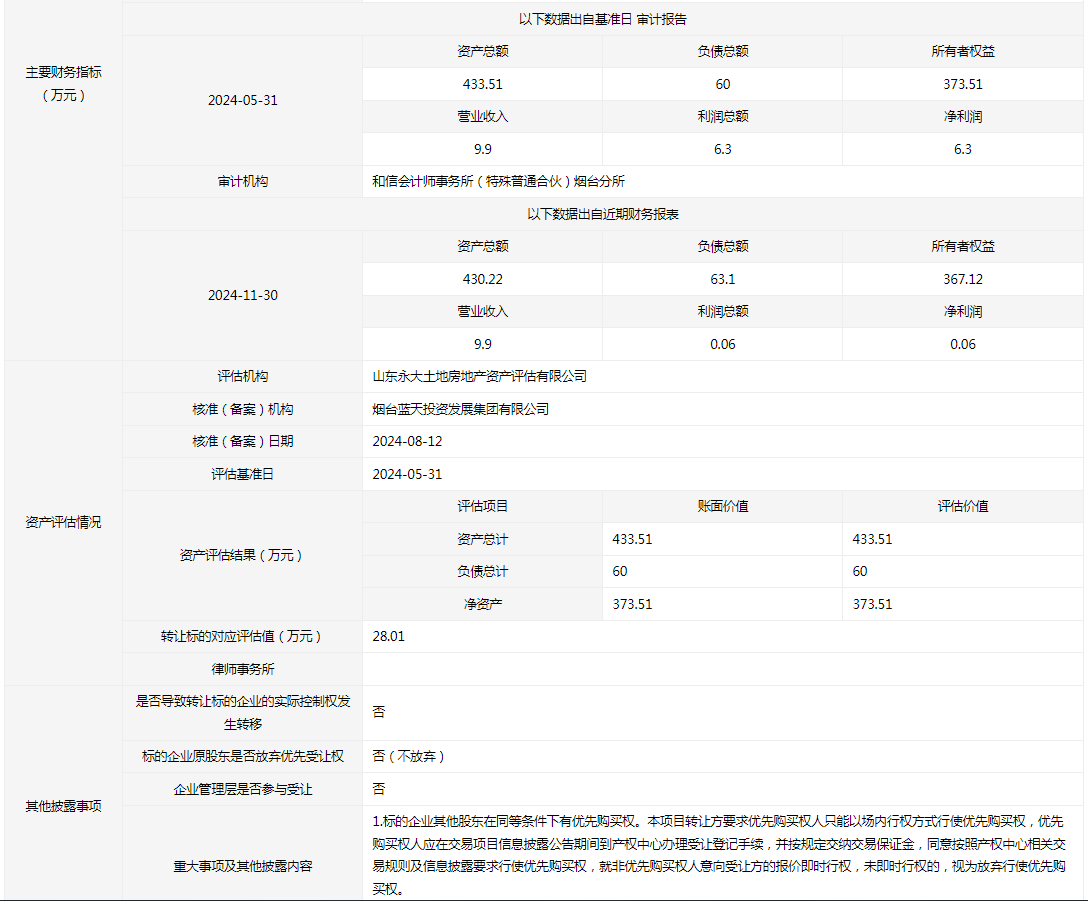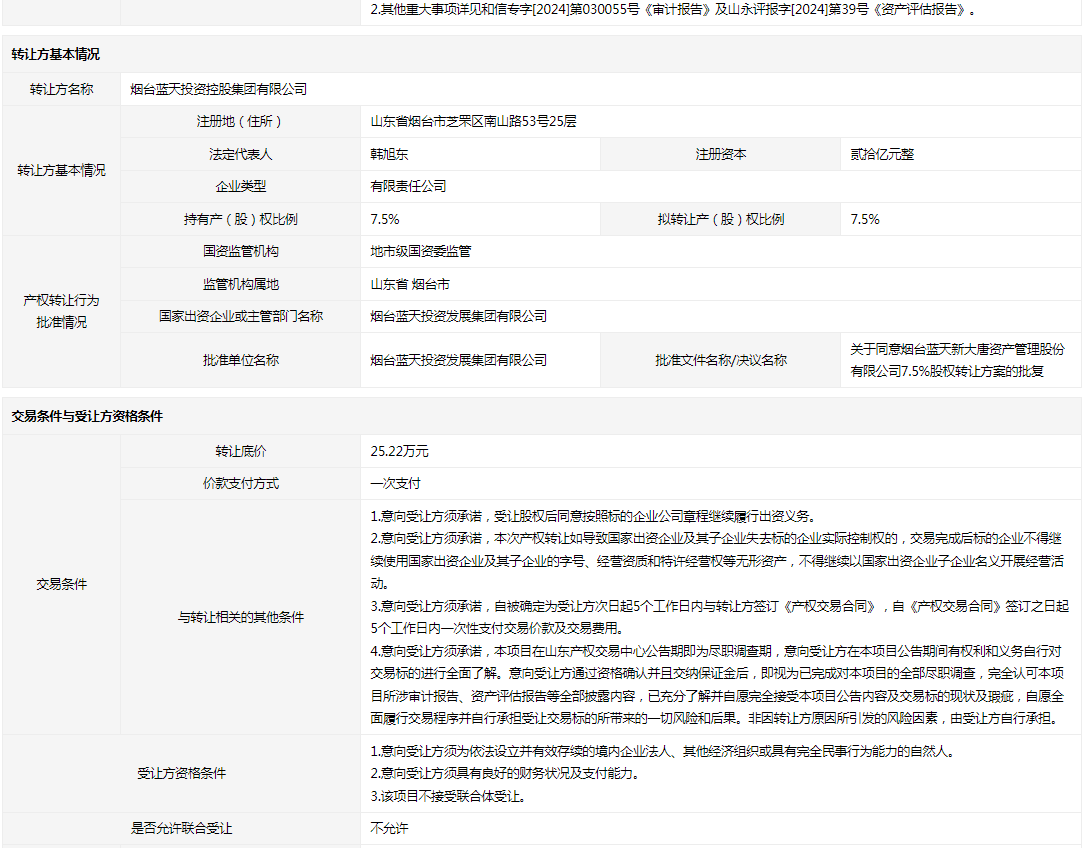 轉(zhuǎn)讓方:煙臺藍天投資控股集團有限公司