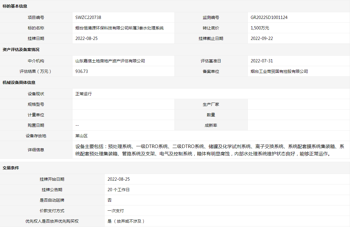 轉(zhuǎn)讓方:煙臺(tái)恒清源環(huán)??萍加邢薰?/li>