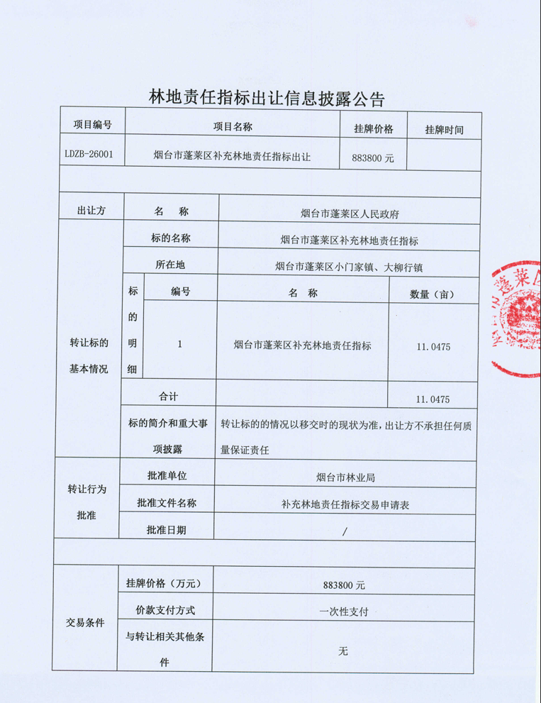煙臺市蓬萊區(qū)林地責任指標出讓
