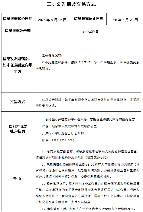 芝罘區(qū)北馬路240號(hào)大樓部分1層及2-3層招租交易公告